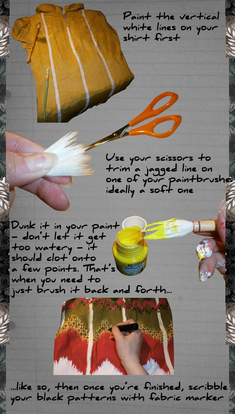Very easy, in fact I suppose the only reason the scissors icon isn't on the far left-hand side is to cover my back with creating the ikat-style effects. It may take a while to get the feel for it and you might want to practise on a scrap of material, but it's very easy when you know how. The scribbling part's easier still.